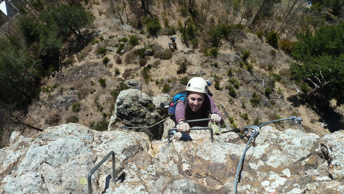 This via ferrata is suitable for beginners and children but NOT for people who are afraid of heights.